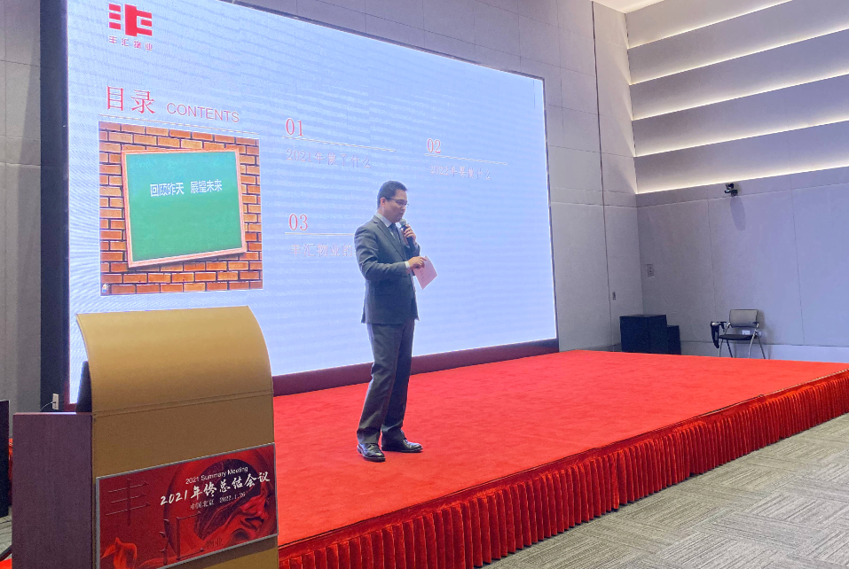 会议最后,温总发表讲话,充分肯定了丰汇物业在2021年整体经营业绩稳定增长,安全生产、疫情防控稳中加固,客户满意度持续增长的突出成绩。